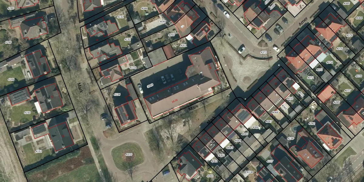 Het perceel waarop Amer 38 staat heeft een oppervlakte van 1429 m². Dit is een zeer groot perceel. De perceeloppervlakte wordt geregistreerd door het Kadaster. Gedetailleerde informatie over de maten van dit perceel kunt u vinden in het rapport Kadastrale kaart met maatvoering van Amer 38.