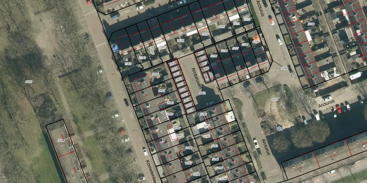 Het perceel waarop Arcturuserf 5 staat heeft een oppervlakte van 18 m². Dit is een klein perceel. De perceeloppervlakte wordt geregistreerd door het Kadaster. Gedetailleerde informatie over de maten van dit perceel kunt u vinden in het rapport Kadastrale kaart met maatvoering van Arcturuserf 5.