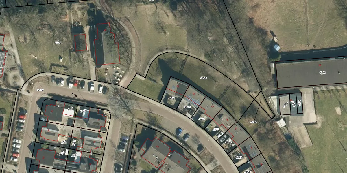 Het perceel waarop Ark 13 staat heeft een oppervlakte van 183 m². Dit is een middelgroot perceel. De perceeloppervlakte wordt geregistreerd door het Kadaster. Gedetailleerde informatie over de maten van dit perceel kunt u vinden in het rapport Kadastrale kaart met maatvoering van Ark 13.