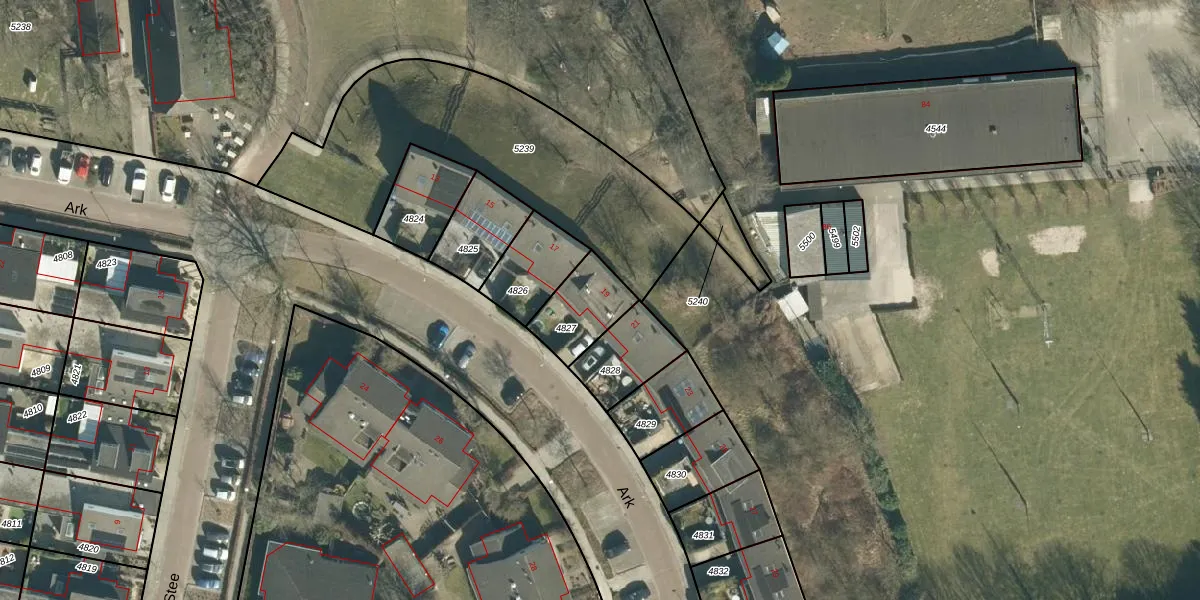Het perceel waarop Ark 19 staat heeft een oppervlakte van 177 m². Dit is een middelgroot perceel. De perceeloppervlakte wordt geregistreerd door het Kadaster. Gedetailleerde informatie over de maten van dit perceel kunt u vinden in het rapport Kadastrale kaart met maatvoering van Ark 19.