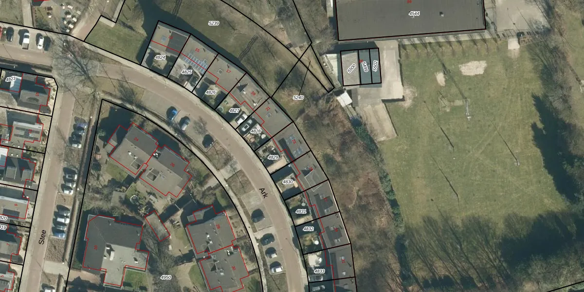 Het perceel waarop Ark 23 staat heeft een oppervlakte van 177 m². Dit is een middelgroot perceel. De perceeloppervlakte wordt geregistreerd door het Kadaster. Gedetailleerde informatie over de maten van dit perceel kunt u vinden in het rapport Kadastrale kaart met maatvoering van Ark 23.