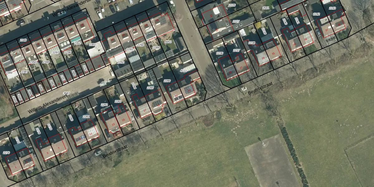 Gebruik de zoekbalk of klik op een perceel voor informatie over de adressen binnen dit perceel.