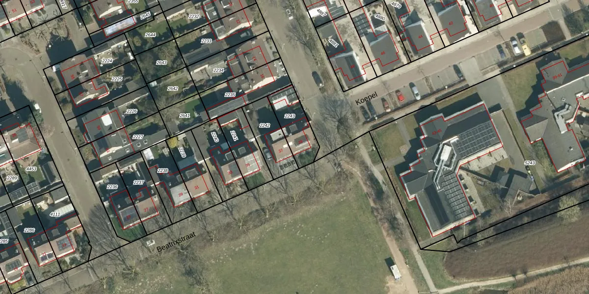 Beatrixstraat 39 is gelegen op kadastraal perceel VHV01D2243. Deze kadastrale aanduiding is uniek en wordt gebruikt door het Kadaster om eigendomsrechten en andere zakelijke rechten vast te leggen. Het perceel maakt onderdeel uit van de kadastrale gemeente Veldhoven.
