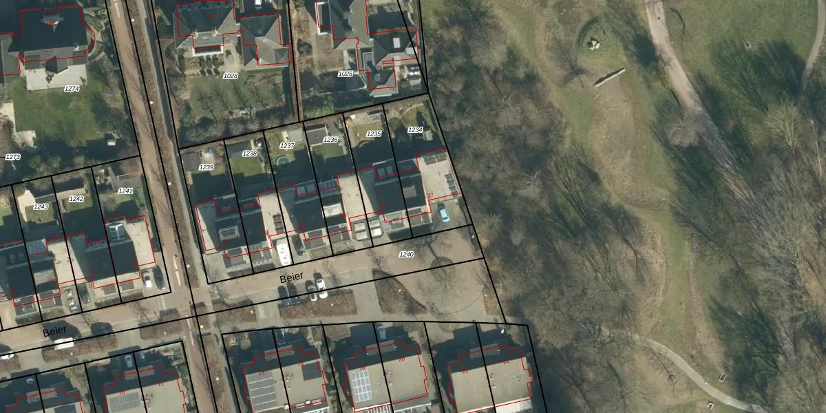 Het perceel waarop Beier 27 staat heeft een oppervlakte van 430 m². Dit is een groot perceel. De perceeloppervlakte wordt geregistreerd door het Kadaster. Gedetailleerde informatie over de maten van dit perceel kunt u vinden in het rapport Kadastrale kaart met maatvoering van Beier 27.