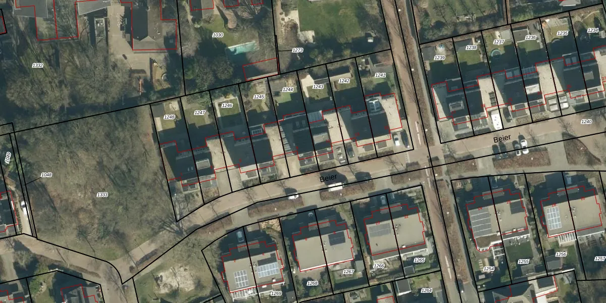 Het perceel waarop Beier 9 staat heeft een oppervlakte van 334 m². Dit is een groot perceel. De perceeloppervlakte wordt geregistreerd door het Kadaster. Gedetailleerde informatie over de maten van dit perceel kunt u vinden in het rapport Kadastrale kaart met maatvoering van Beier 9.