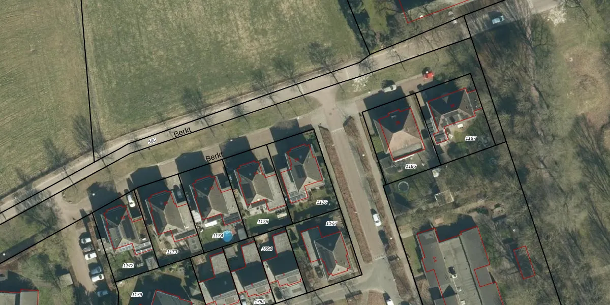 Het perceel waarop Berkt 26 staat heeft een oppervlakte van 447 m². Dit is een groot perceel. De perceeloppervlakte wordt geregistreerd door het Kadaster. Gedetailleerde informatie over de maten van dit perceel kunt u vinden in het rapport Kadastrale kaart met maatvoering van Berkt 26.