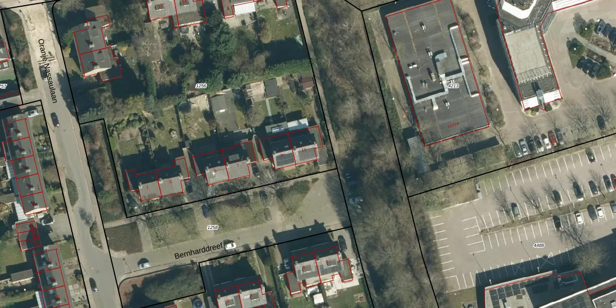 Het perceel waarop Bernharddreef 11 staat heeft een oppervlakte van 5370 m². Dit is een zeer groot perceel. De perceeloppervlakte wordt geregistreerd door het Kadaster. Gedetailleerde informatie over de maten van dit perceel kunt u vinden in het rapport Kadastrale kaart met maatvoering van Bernharddreef 11.