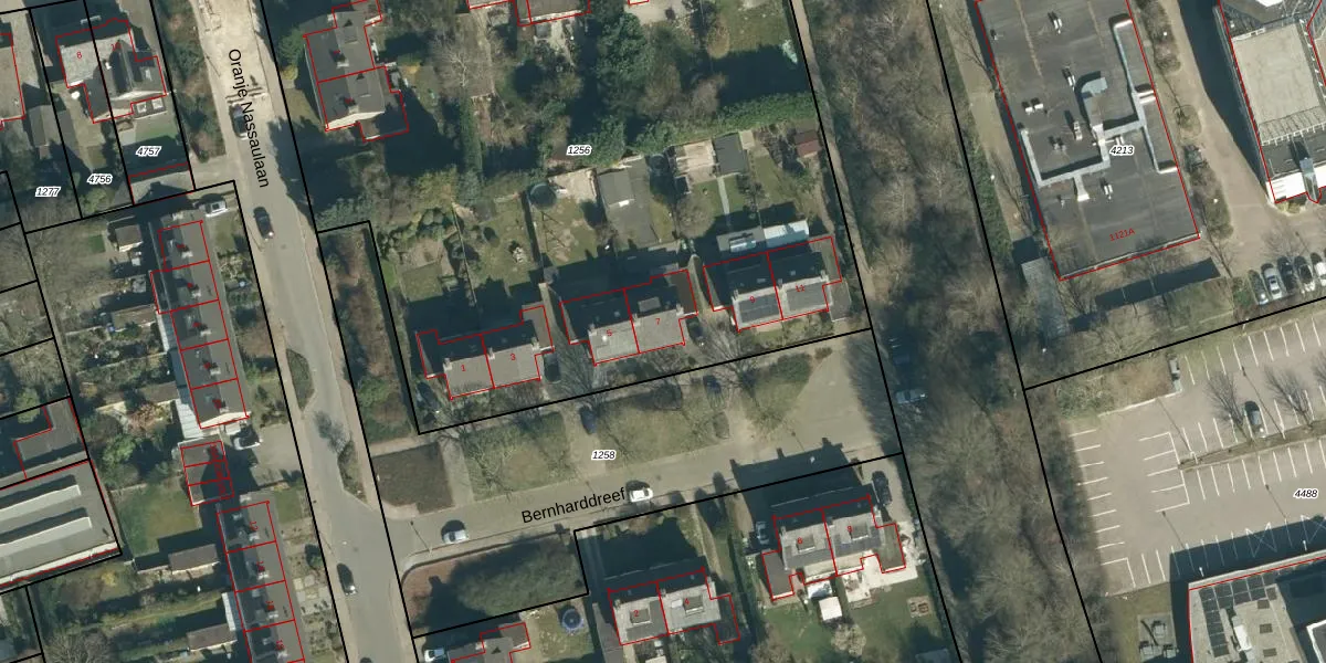 Bernharddreef 7 is gelegen op kadastraal perceel VHV01D1256. Deze kadastrale aanduiding is uniek en wordt gebruikt door het Kadaster om eigendomsrechten en andere zakelijke rechten vast te leggen. Het perceel maakt onderdeel uit van de kadastrale gemeente Veldhoven.