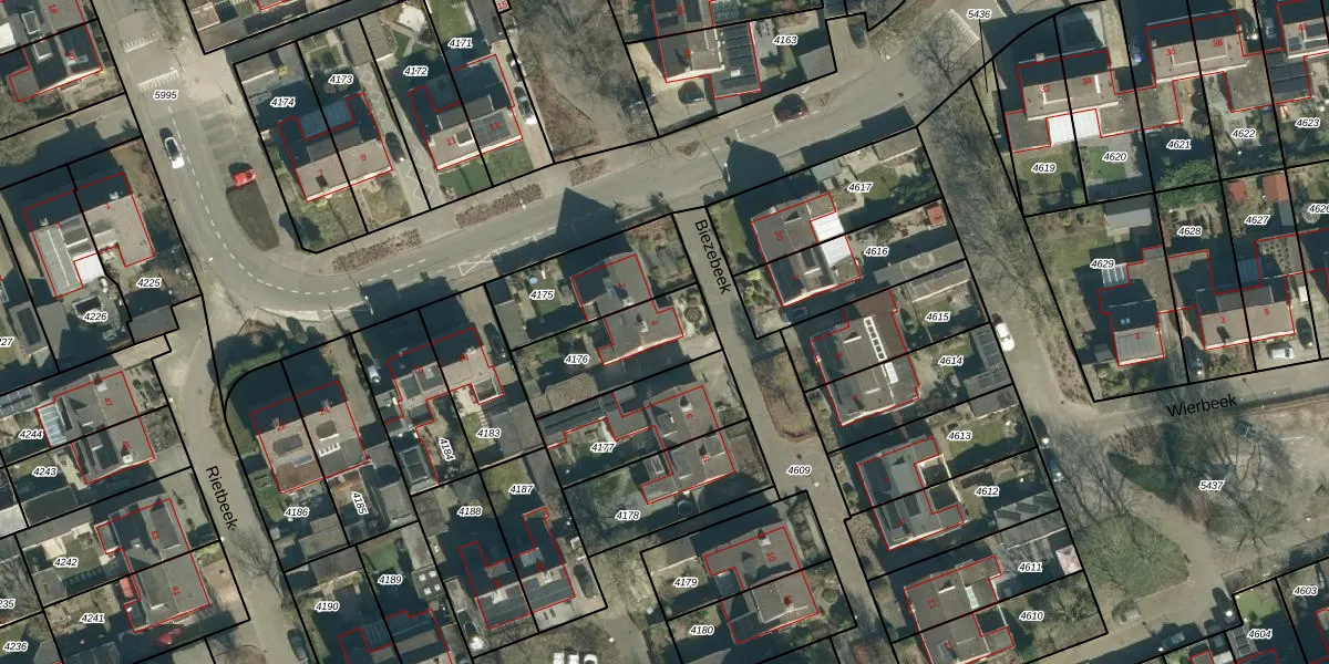Biezebeek 4 is gelegen op kadastraal perceel VHV01E4176. Deze kadastrale aanduiding is uniek en wordt gebruikt door het Kadaster om eigendomsrechten en andere zakelijke rechten vast te leggen. Het perceel maakt onderdeel uit van de kadastrale gemeente Veldhoven.