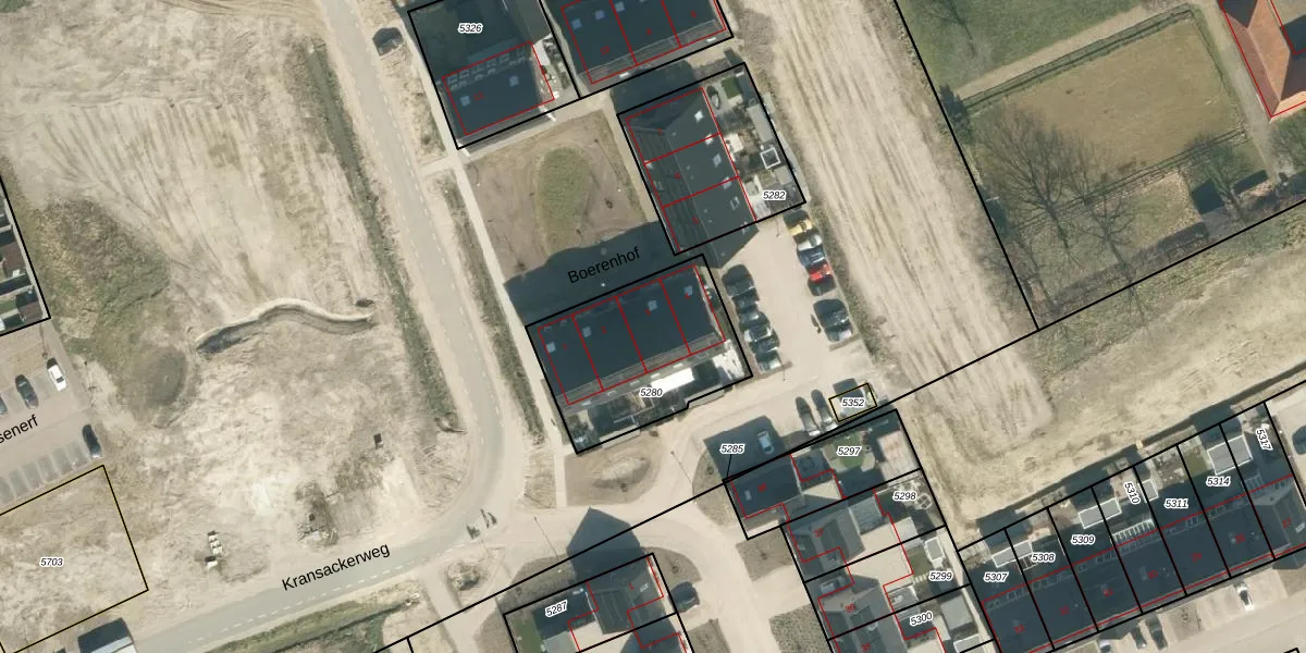 Het perceel waarop Boerenhof 3 staat heeft een oppervlakte van 605 m². Dit is een groot perceel. De perceeloppervlakte wordt geregistreerd door het Kadaster. Gedetailleerde informatie over de maten van dit perceel kunt u vinden in het rapport Kadastrale kaart met maatvoering van Boerenhof 3.