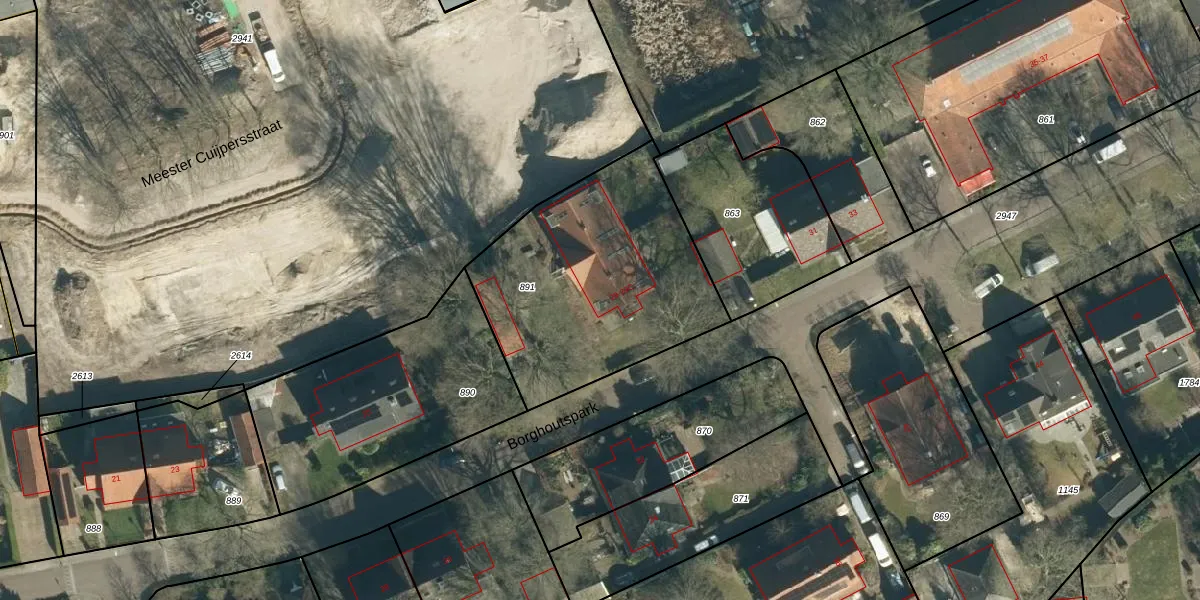 Borghoutspark 29 is gelegen op kadastraal perceel VHV01K891. Deze kadastrale aanduiding is uniek en wordt gebruikt door het Kadaster om eigendomsrechten en andere zakelijke rechten vast te leggen. Het perceel maakt onderdeel uit van de kadastrale gemeente Veldhoven.