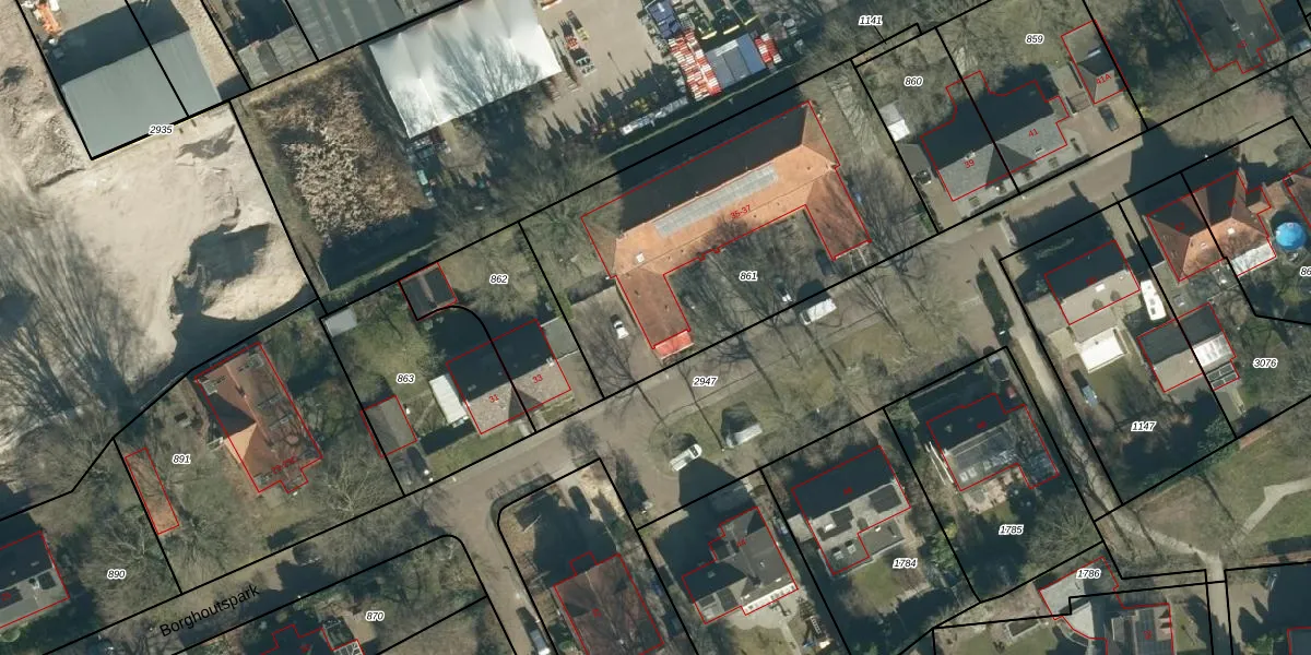Borghoutspark 35 is gelegen op kadastraal perceel VHV01K861. Deze kadastrale aanduiding is uniek en wordt gebruikt door het Kadaster om eigendomsrechten en andere zakelijke rechten vast te leggen. Het perceel maakt onderdeel uit van de kadastrale gemeente Veldhoven.