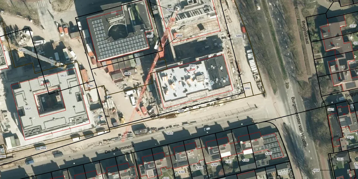 Het perceel waarop het adres ligt is VHV01-D-5807. De afkorting 'VHV01' staat voor kadastrale gemeente Veldhoven. Het perceel is met 3282 m² relatief groot. Het gemiddelde ligt in de kadastrale gemeente Veldhoven op 1485,81 m². Het grootste perceel in de kadastrale gemeente is 78,9 ha. Het kleinste perceel heeft een oppervlakte van 0 m². Op het perceel zijn 87 adressen aanwezig. De laatste wijziging in het de Basisregistratie Kadaster (BRK) was op 25-02-2026.