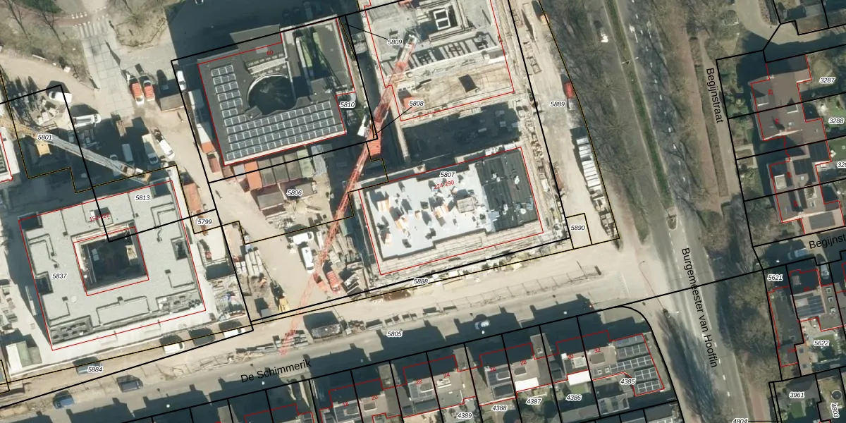 Het perceel waarop het adres ligt is VHV01-D-5807. De afkorting 'VHV01' staat voor kadastrale gemeente Veldhoven. Het perceel is met 3282 m² relatief groot. Het gemiddelde ligt in de kadastrale gemeente Veldhoven op 1485,39 m². Het grootste perceel in de kadastrale gemeente is 78,9 ha. Het kleinste perceel heeft een oppervlakte van 0 m². Op het perceel liggen in totaal 87 adressen. De huidige grenzen van het perceel zijn digitaal in de Basisregistratie Kadaster (BRK) geregistreerd op 25-02-2026.