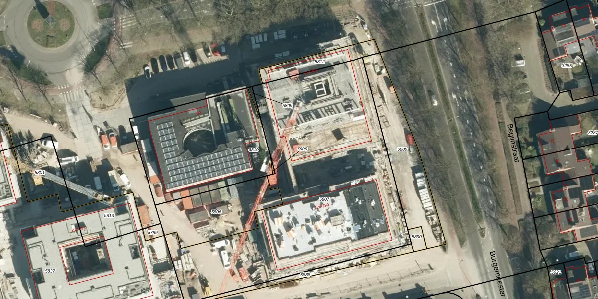 Het perceel waarop het adres ligt is VHV01-D-5807. De afkorting 'VHV01' staat voor kadastrale gemeente Veldhoven. Het perceel is met 3282 m² relatief groot. Het gemiddelde ligt in de kadastrale gemeente Veldhoven op 1485,81 m². De grootste perceeloppervlakte in de kadastrale gemeente is 78,9 ha. De kleinste oppervlakte bedraagt 0 m². Op het perceel liggen in totaal 87 adressen. In de Basisregistratie Kadaster (BRK) werden de grenzen van het perceel geregistreerd op 25-02-2026.