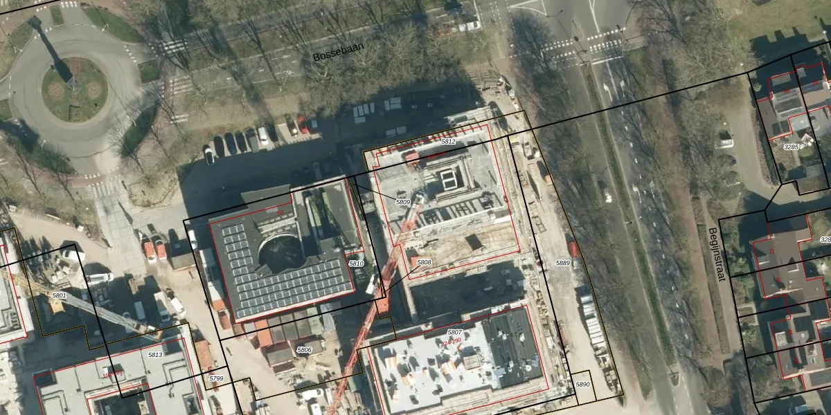 Bossebaan 322 is gelegen op kadastraal perceel VHV01D5807. Deze kadastrale aanduiding is uniek en wordt gebruikt door het Kadaster om eigendomsrechten en andere zakelijke rechten vast te leggen. Het perceel maakt onderdeel uit van de kadastrale gemeente Veldhoven.