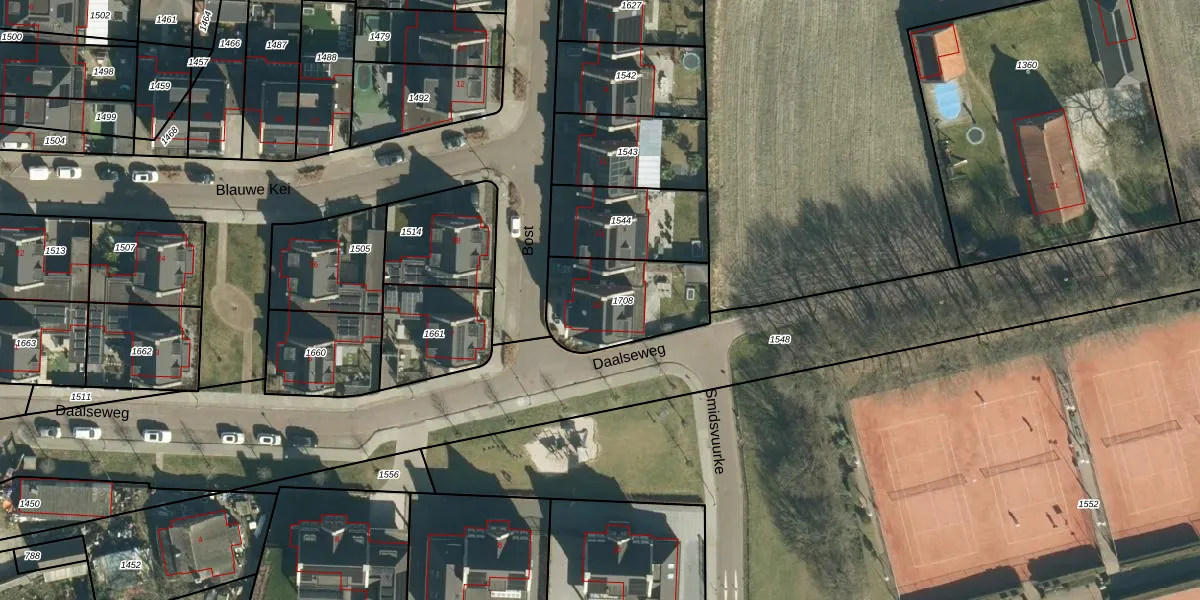 Gebruik de zoekbalk of klik op een perceel voor informatie over de adressen binnen dit perceel.
