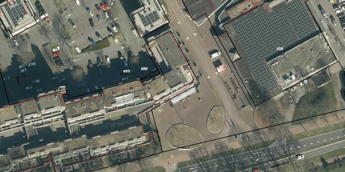 Het perceel waarop Bree 101 staat heeft een oppervlakte van 9192 m². Dit is een zeer groot perceel. De perceeloppervlakte wordt geregistreerd door het Kadaster. Gedetailleerde informatie over de maten van dit perceel kunt u vinden in het rapport Kadastrale kaart met maatvoering van Bree 101.