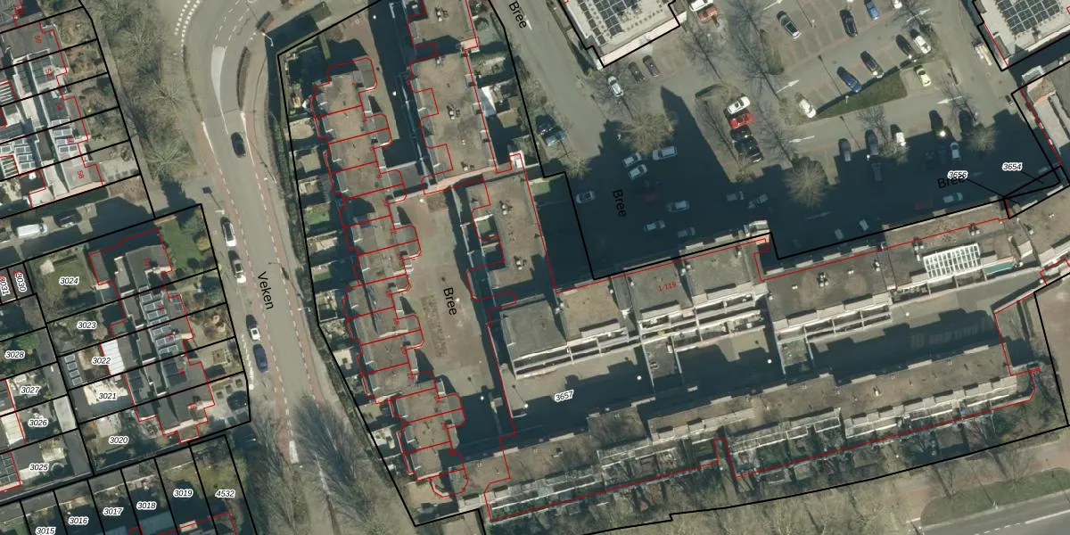 Bree 33 is gelegen op kadastraal perceel VHV01D3657. Deze kadastrale aanduiding is uniek en wordt gebruikt door het Kadaster om eigendomsrechten en andere zakelijke rechten vast te leggen. Het perceel maakt onderdeel uit van de kadastrale gemeente Veldhoven.