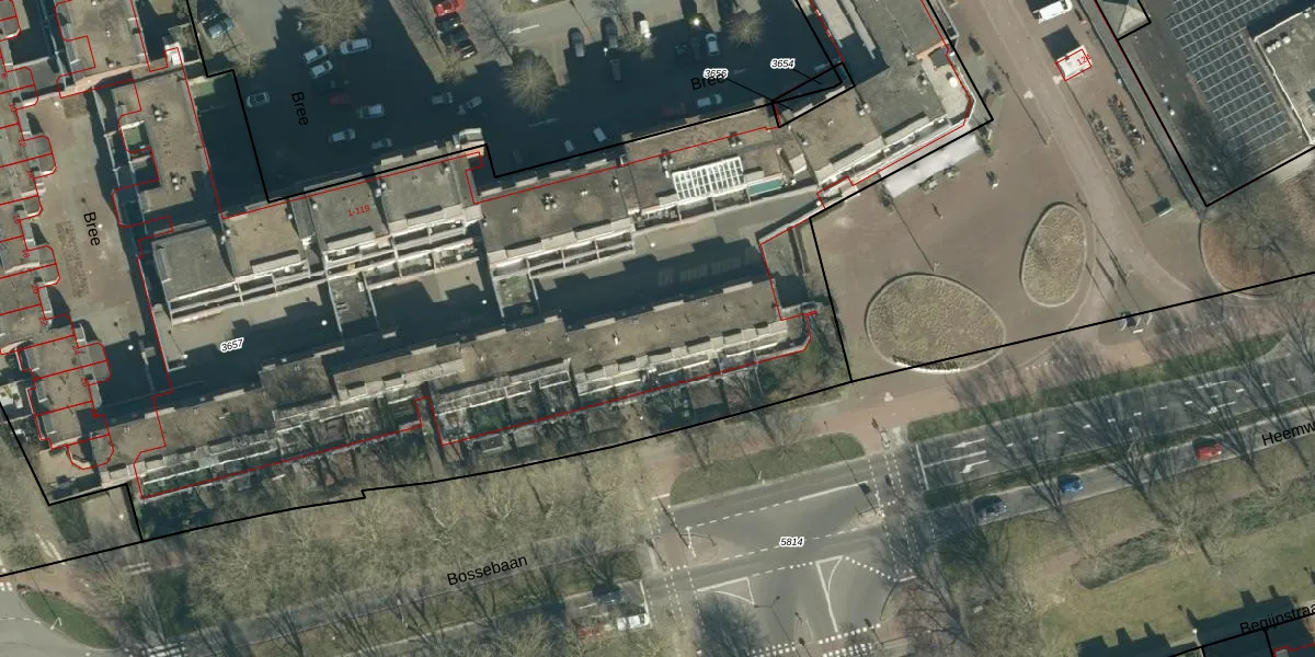 Het perceel waarop Bree 60 staat heeft een oppervlakte van 9192 m². Dit is een zeer groot perceel. De perceeloppervlakte wordt geregistreerd door het Kadaster. Gedetailleerde informatie over de maten van dit perceel kunt u vinden in het rapport Kadastrale kaart met maatvoering van Bree 60.