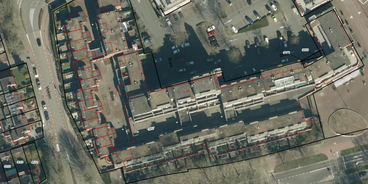 Het perceel waarop Bree 61 staat heeft een oppervlakte van 9192 m². Dit is een zeer groot perceel. De perceeloppervlakte wordt geregistreerd door het Kadaster. Gedetailleerde informatie over de maten van dit perceel kunt u vinden in het rapport Kadastrale kaart met maatvoering van Bree 61.