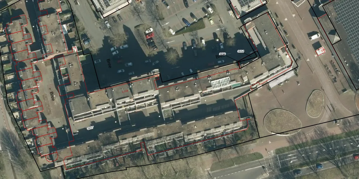 Het perceel waarop Bree 83 staat heeft een oppervlakte van 9192 m². Dit is een zeer groot perceel. De perceeloppervlakte wordt geregistreerd door het Kadaster. Gedetailleerde informatie over de maten van dit perceel kunt u vinden in het rapport Kadastrale kaart met maatvoering van Bree 83.