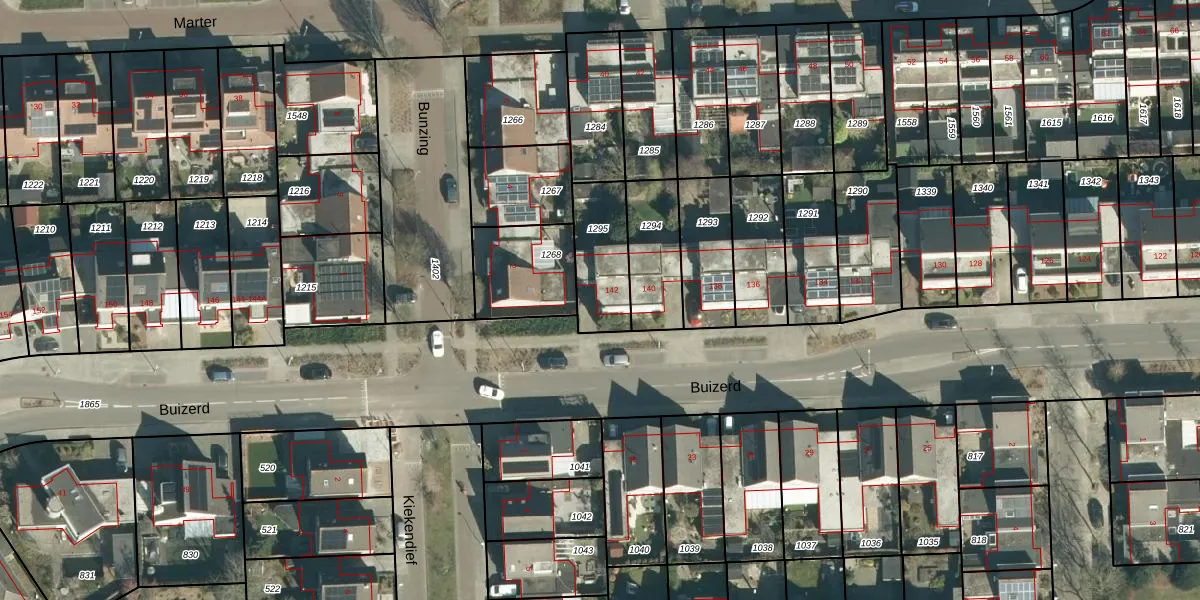 Het perceel waarop Buizerd 142 staat heeft een oppervlakte van 223 m². Dit is een middelgroot perceel. De perceeloppervlakte wordt geregistreerd door het Kadaster. Gedetailleerde informatie over de maten van dit perceel kunt u vinden in het rapport Kadastrale kaart met maatvoering van Buizerd 142.