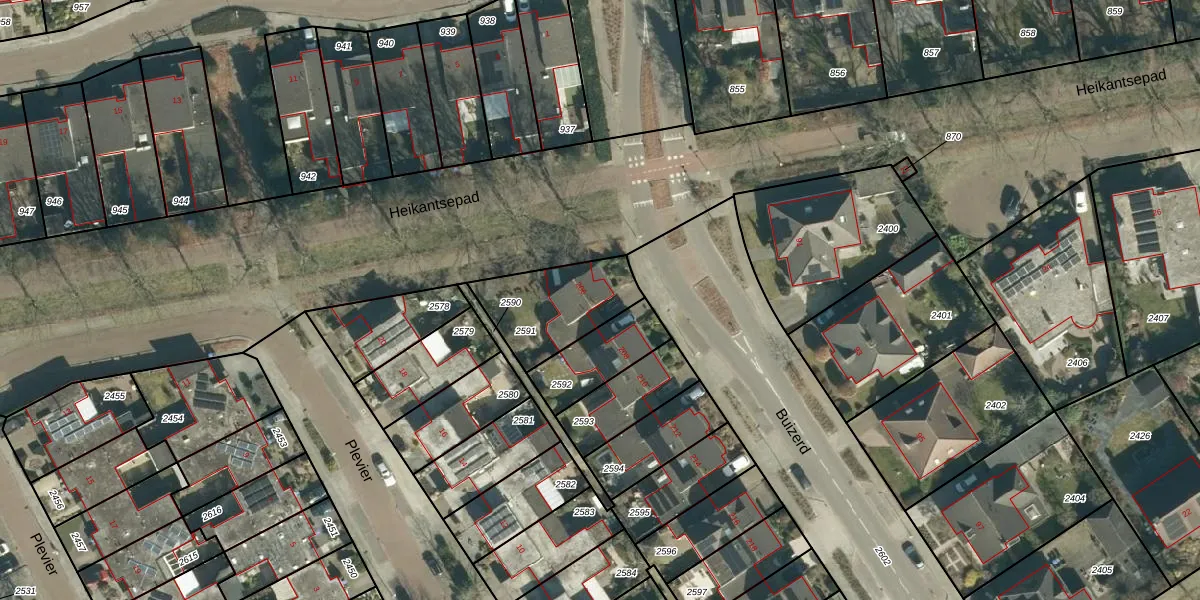 Gebruik de zoekbalk of klik op een perceel voor informatie over de adressen binnen dit perceel.