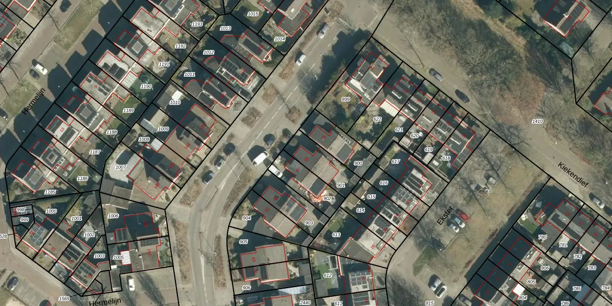 Gebruik de zoekbalk of klik op een perceel voor informatie over de adressen binnen dit perceel.