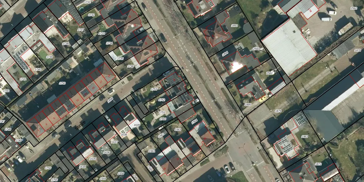 Gebruik de zoekbalk of klik op een perceel voor informatie over de adressen binnen dit perceel.