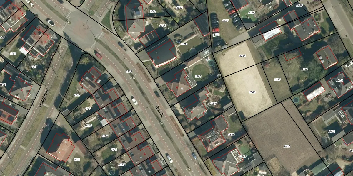 Het perceel waarop Burcht 60 staat heeft een oppervlakte van 640 m². Dit is een groot perceel. De perceeloppervlakte wordt geregistreerd door het Kadaster. Gedetailleerde informatie over de maten van dit perceel kunt u vinden in het rapport Kadastrale kaart met maatvoering van Burcht 60.