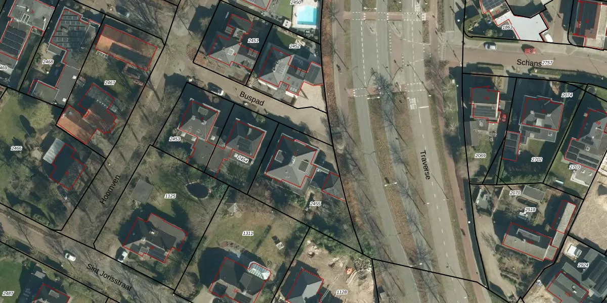 Het perceel waarop Buspad 1 staat heeft een oppervlakte van 819 m². Dit is een groot perceel. De perceeloppervlakte wordt geregistreerd door het Kadaster. Gedetailleerde informatie over de maten van dit perceel kunt u vinden in het rapport Kadastrale kaart met maatvoering van Buspad 1.