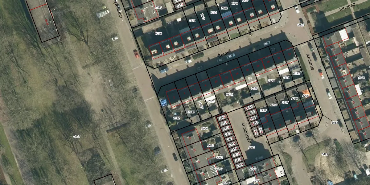 Het perceel waarop Ceres 4 staat heeft een oppervlakte van 150 m². Dit is een middelgroot perceel. De perceeloppervlakte wordt geregistreerd door het Kadaster. Gedetailleerde informatie over de maten van dit perceel kunt u vinden in het rapport Kadastrale kaart met maatvoering van Ceres 4.