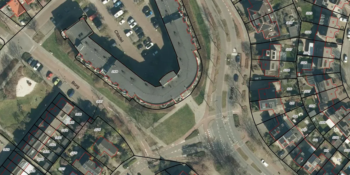 Het perceel waarop Citadel 100 staat heeft een oppervlakte van 2192 m². Dit is een zeer groot perceel. De perceeloppervlakte wordt geregistreerd door het Kadaster. Gedetailleerde informatie over de maten van dit perceel kunt u vinden in het rapport Kadastrale kaart met maatvoering van Citadel 100.
