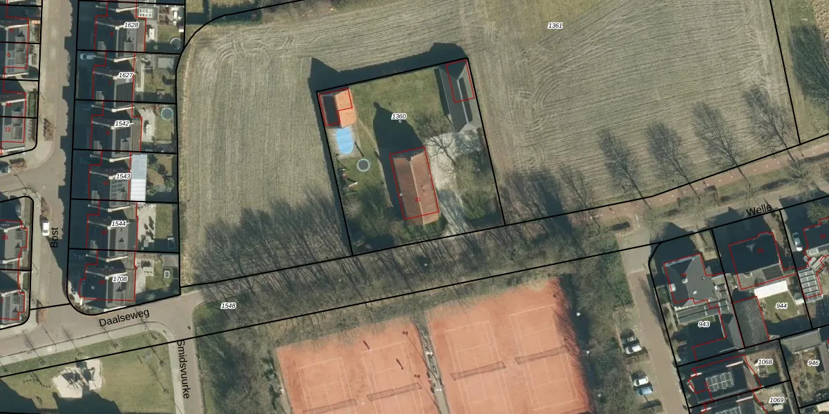 Daalseweg 21 is gelegen op kadastraal perceel VHV01H1360. Deze kadastrale aanduiding is uniek en wordt gebruikt door het Kadaster om eigendomsrechten en andere zakelijke rechten vast te leggen. Het perceel maakt onderdeel uit van de kadastrale gemeente Veldhoven.