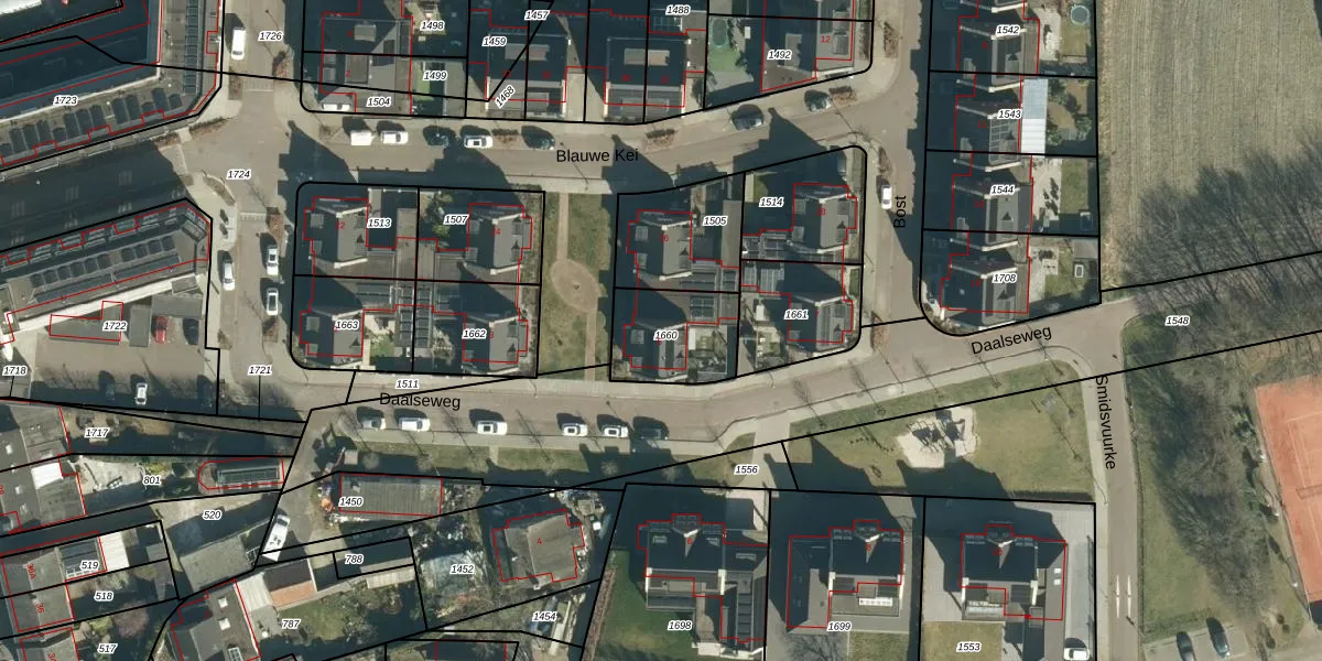 Gebruik de zoekbalk of klik op een perceel voor informatie over de adressen binnen dit perceel.