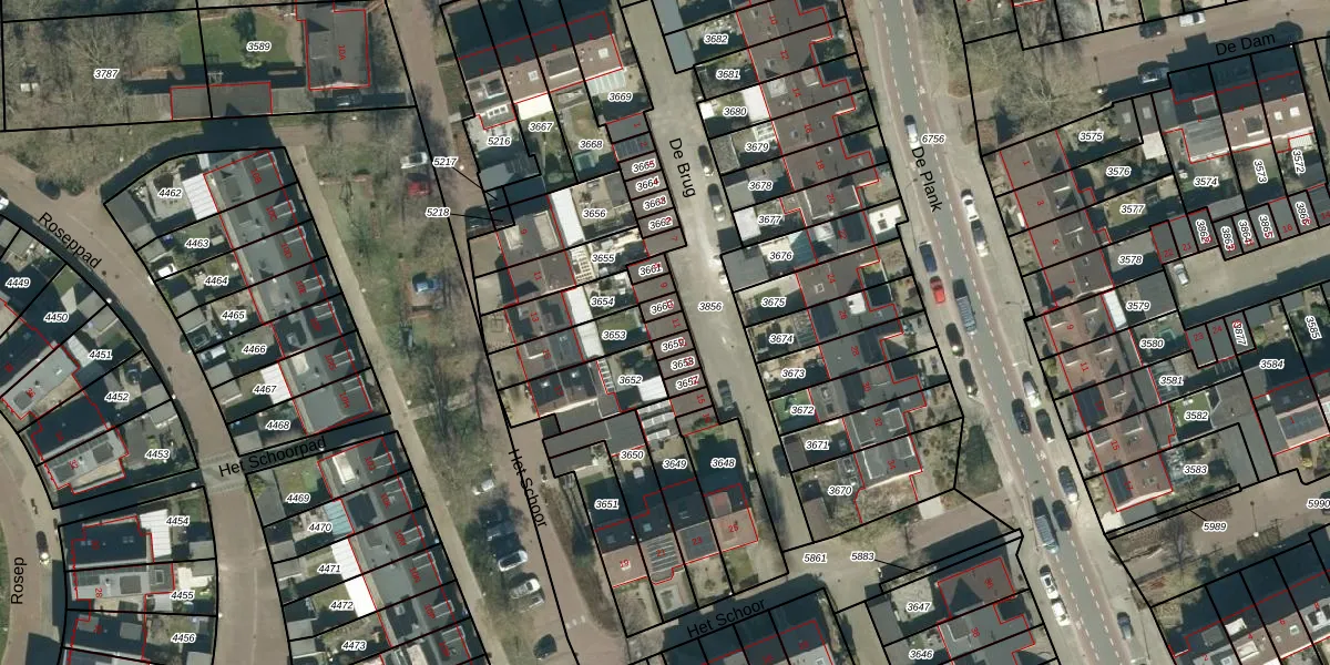 De Brug 11 is gelegen op kadastraal perceel VHV01E3653. Deze kadastrale aanduiding is uniek en wordt gebruikt door het Kadaster om eigendomsrechten en andere zakelijke rechten vast te leggen. Het perceel maakt onderdeel uit van de kadastrale gemeente Veldhoven.