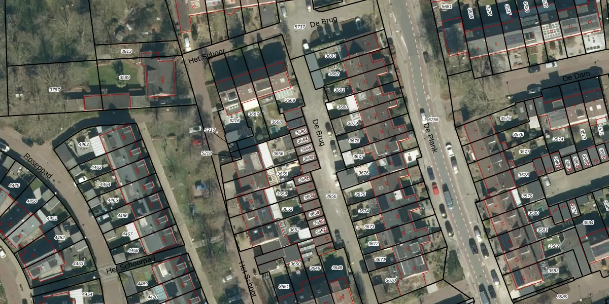 Het perceel waarop De Brug 5 staat heeft een oppervlakte van 18 m². Dit is een klein perceel. De perceeloppervlakte wordt geregistreerd door het Kadaster. Gedetailleerde informatie over de maten van dit perceel kunt u vinden in het rapport Kadastrale kaart met maatvoering van De Brug 5.