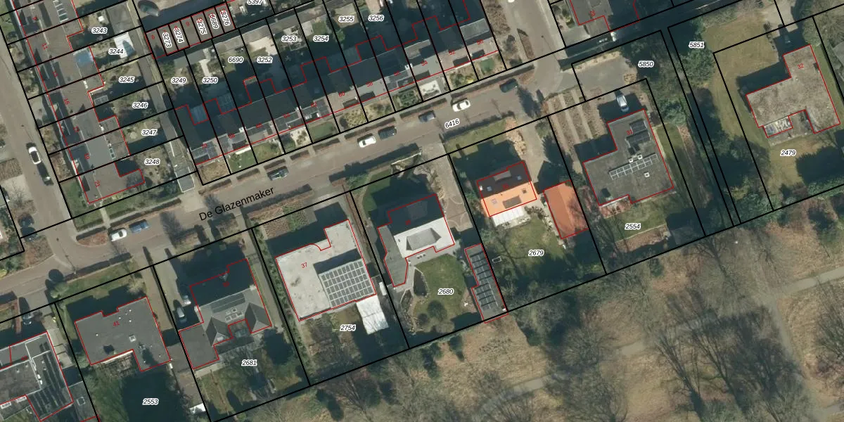 De Glazenmaker 35 is gelegen op kadastraal perceel VHV01E2680. Deze kadastrale aanduiding is uniek en wordt gebruikt door het Kadaster om eigendomsrechten en andere zakelijke rechten vast te leggen. Het perceel maakt onderdeel uit van de kadastrale gemeente Veldhoven.