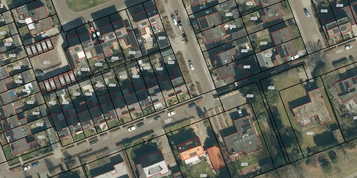 De Glazenmaker 50 is gelegen op kadastraal perceel VHV01E3259. Deze kadastrale aanduiding is uniek en wordt gebruikt door het Kadaster om eigendomsrechten en andere zakelijke rechten vast te leggen. Het perceel maakt onderdeel uit van de kadastrale gemeente Veldhoven.