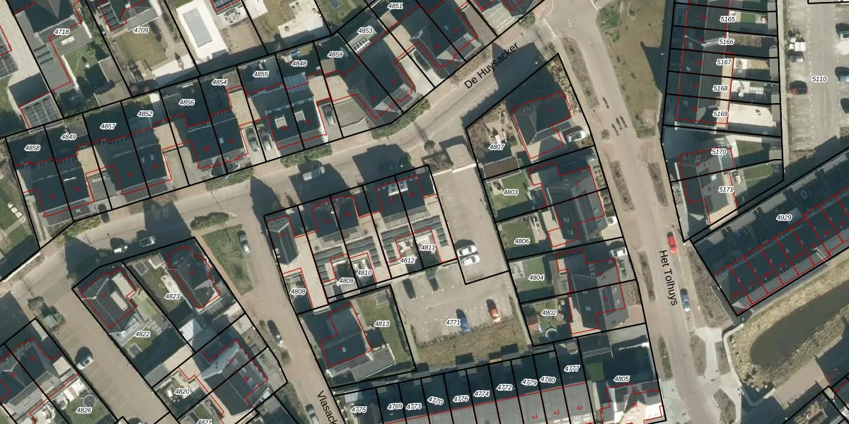 De Huysacker 45 is gelegen op kadastraal perceel VHV01C4811. Deze kadastrale aanduiding is uniek en wordt gebruikt door het Kadaster om eigendomsrechten en andere zakelijke rechten vast te leggen. Het perceel maakt onderdeel uit van de kadastrale gemeente Veldhoven.