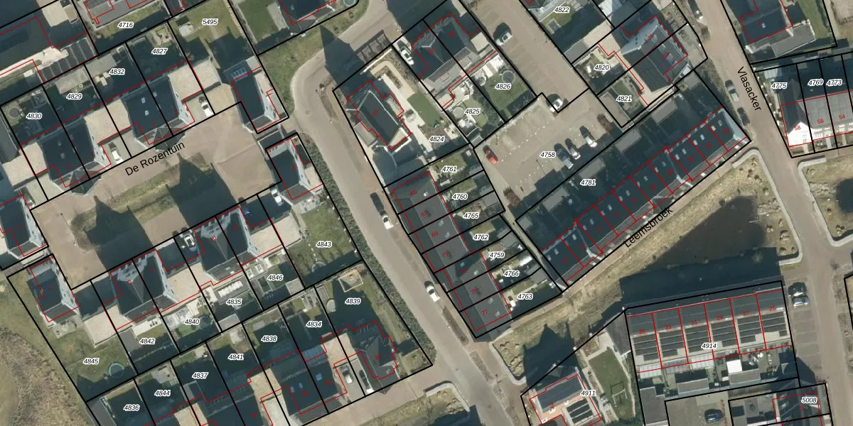 Gebruik de zoekbalk of klik op een perceel voor informatie over de adressen binnen dit perceel.