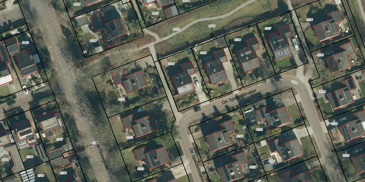 De Speldenmaker 11 is gelegen op kadastraal perceel VHV01E3730. Deze kadastrale aanduiding is uniek en wordt gebruikt door het Kadaster om eigendomsrechten en andere zakelijke rechten vast te leggen. Het perceel maakt onderdeel uit van de kadastrale gemeente Veldhoven.