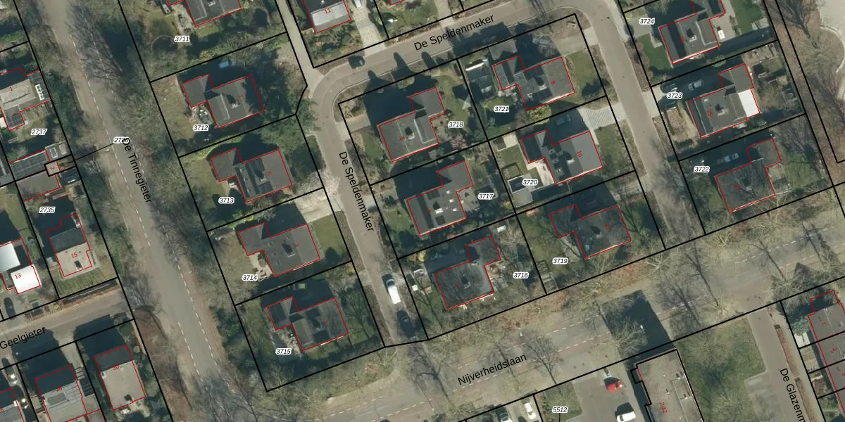 Het perceel waarop De Speldenmaker 4 staat heeft een oppervlakte van 564 m². Dit is een groot perceel. De perceeloppervlakte wordt geregistreerd door het Kadaster. Gedetailleerde informatie over de maten van dit perceel kunt u vinden in het rapport Kadastrale kaart met maatvoering van De Speldenmaker 4.