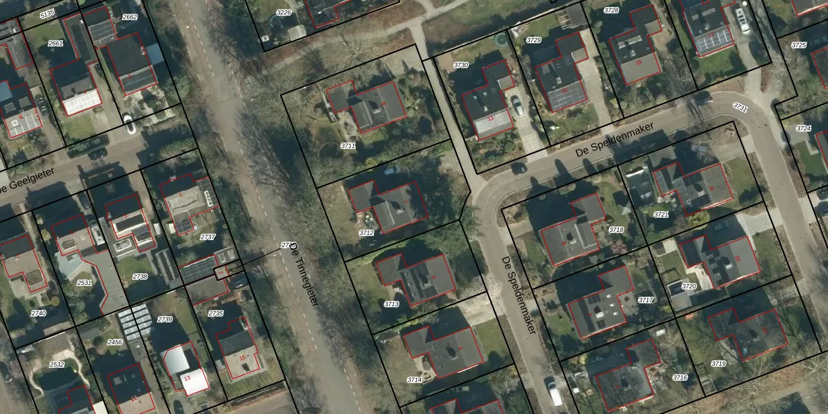 De Speldenmaker 7 is gelegen op kadastraal perceel VHV01E3712. Deze kadastrale aanduiding is uniek en wordt gebruikt door het Kadaster om eigendomsrechten en andere zakelijke rechten vast te leggen. Het perceel maakt onderdeel uit van de kadastrale gemeente Veldhoven.