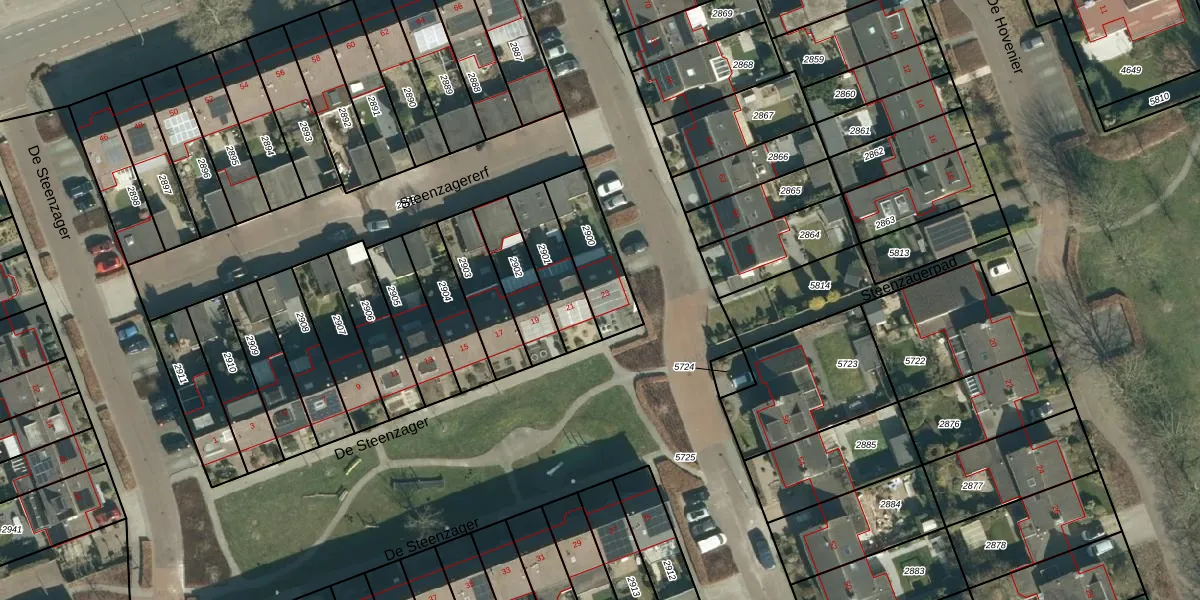De Steenzager 23 is gelegen op kadastraal perceel VHV01E2900. Deze kadastrale aanduiding is uniek en wordt gebruikt door het Kadaster om eigendomsrechten en andere zakelijke rechten vast te leggen. Het perceel maakt onderdeel uit van de kadastrale gemeente Veldhoven.