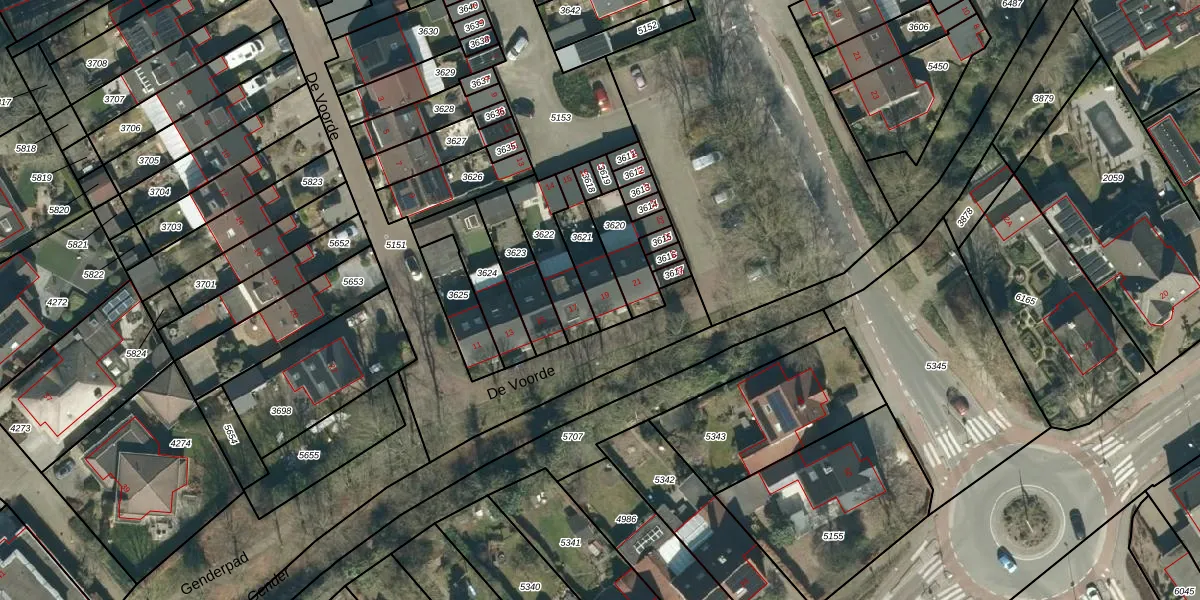 Het perceel waarop De Voorde 19 staat heeft een oppervlakte van 138 m². Dit is een middelgroot perceel. De perceeloppervlakte wordt geregistreerd door het Kadaster. Gedetailleerde informatie over de maten van dit perceel kunt u vinden in het rapport Kadastrale kaart met maatvoering van De Voorde 19.