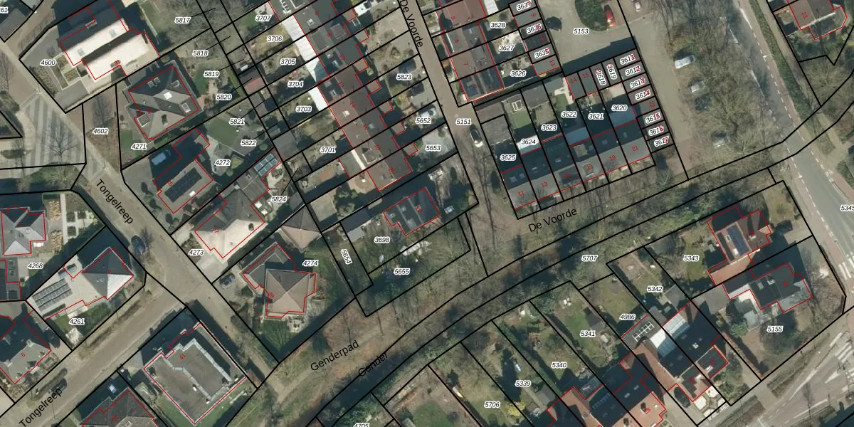 Het perceel waarop De Voorde 22 staat heeft een oppervlakte van 422 m². Dit is een groot perceel. De perceeloppervlakte wordt geregistreerd door het Kadaster. Gedetailleerde informatie over de maten van dit perceel kunt u vinden in het rapport Kadastrale kaart met maatvoering van De Voorde 22.