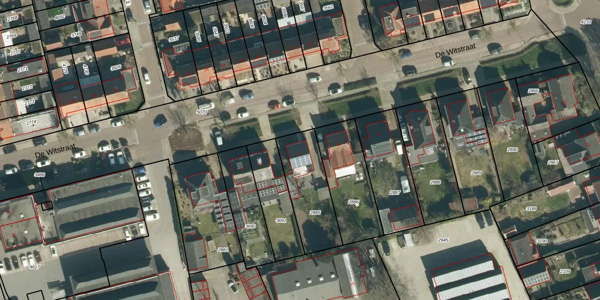 De Witstraat 13 is gelegen op kadastraal perceel VHV01A2885. Deze kadastrale aanduiding is uniek en wordt gebruikt door het Kadaster om eigendomsrechten en andere zakelijke rechten vast te leggen. Het perceel maakt onderdeel uit van de kadastrale gemeente Veldhoven.