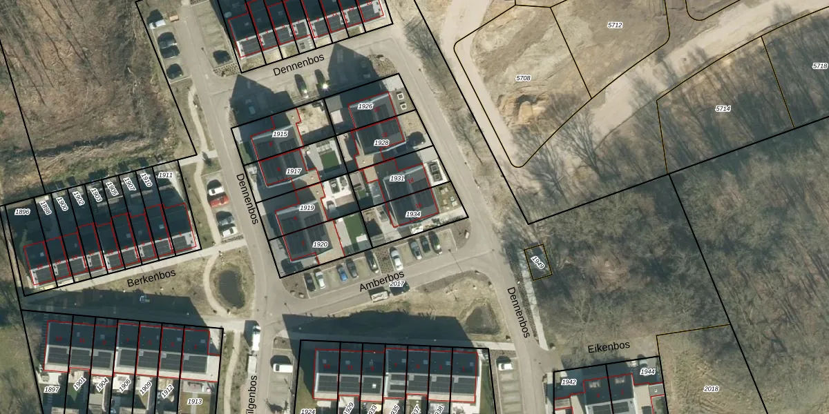 Dennenbos 16 is gelegen op kadastraal perceel VHV01G1934. Deze kadastrale aanduiding is uniek en wordt gebruikt door het Kadaster om eigendomsrechten en andere zakelijke rechten vast te leggen. Het perceel maakt onderdeel uit van de kadastrale gemeente Veldhoven.